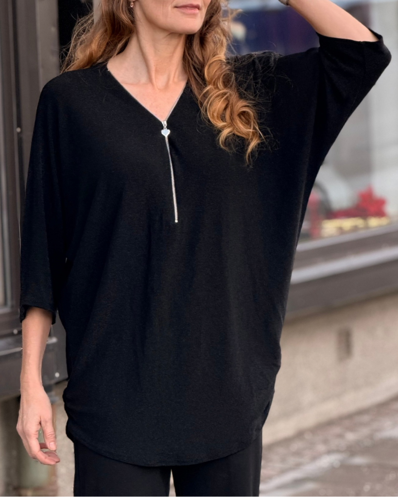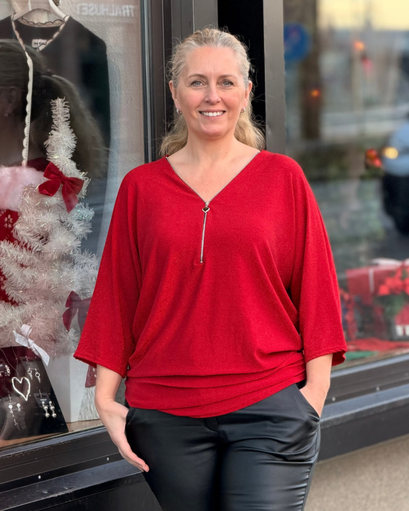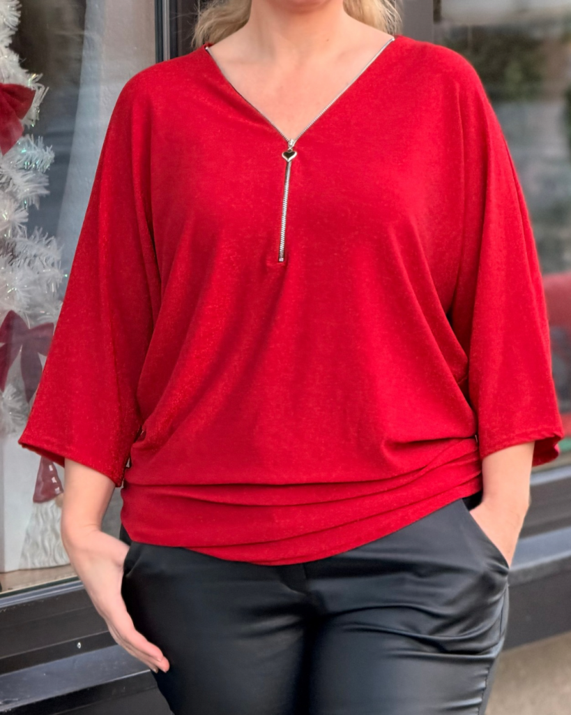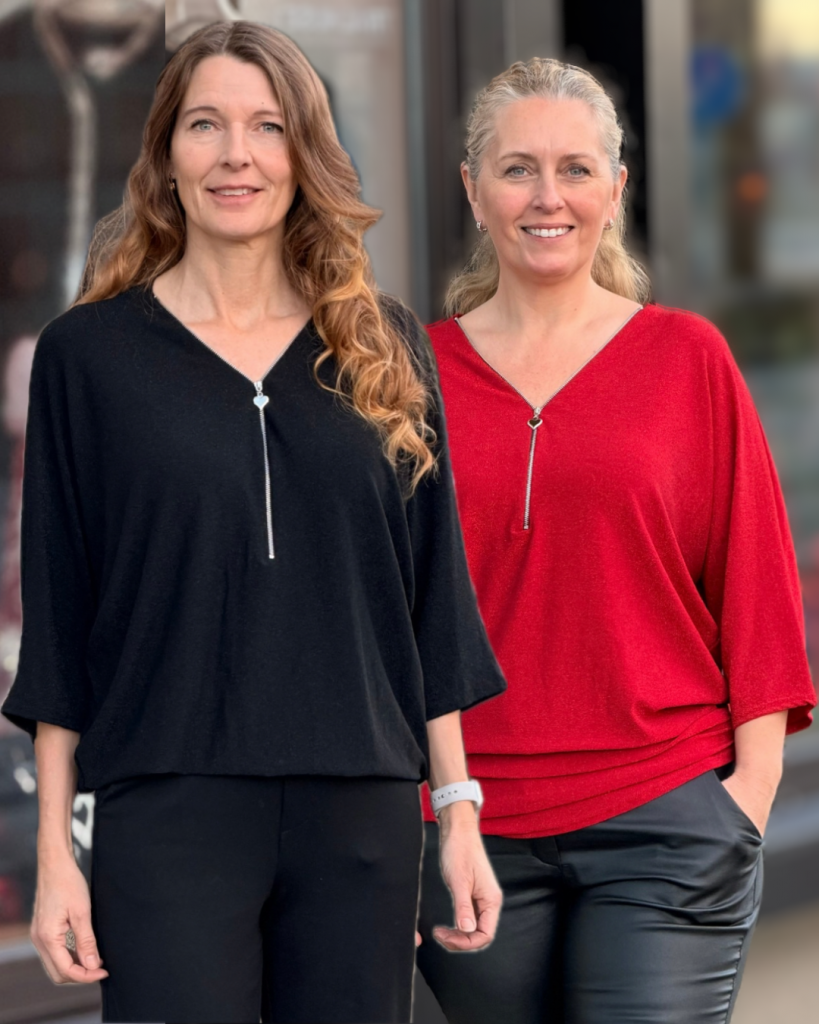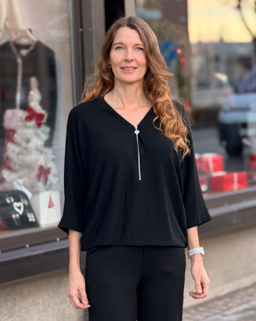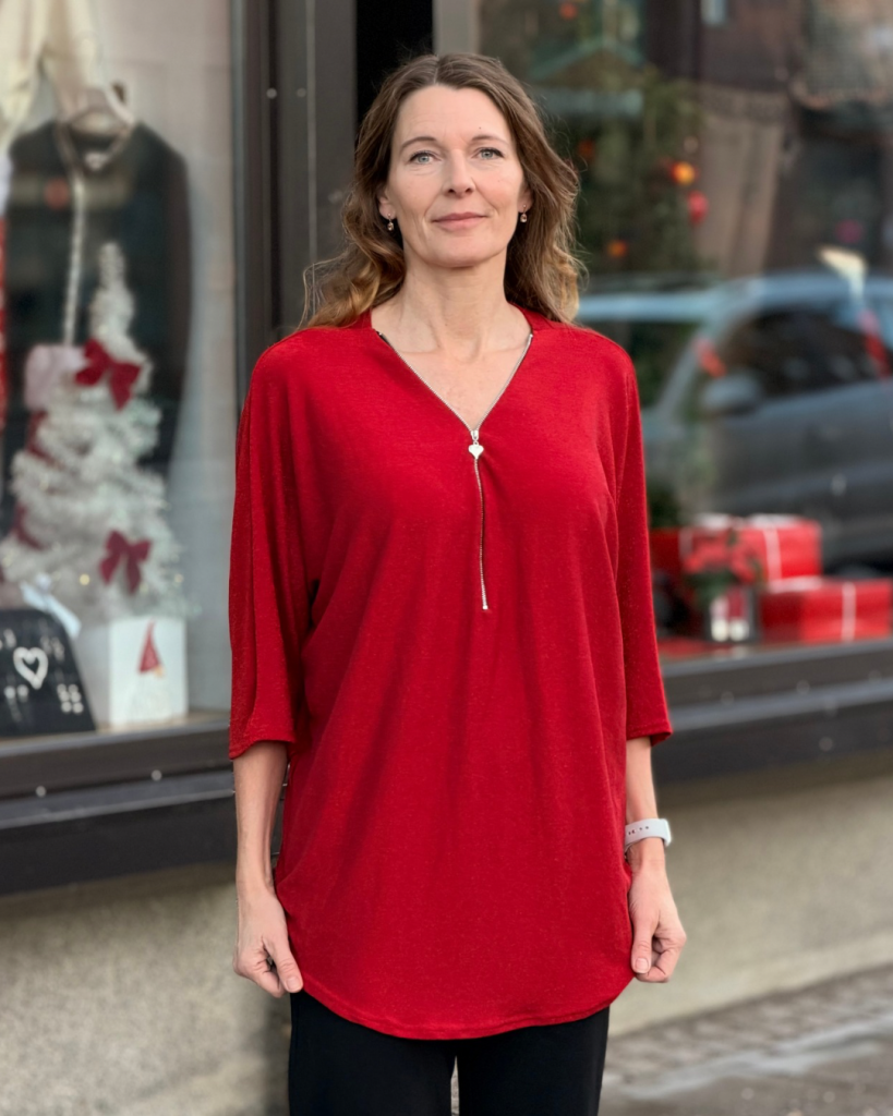 Superstretchig festtopp med glittertyg och vacker dragkedja med hjärta