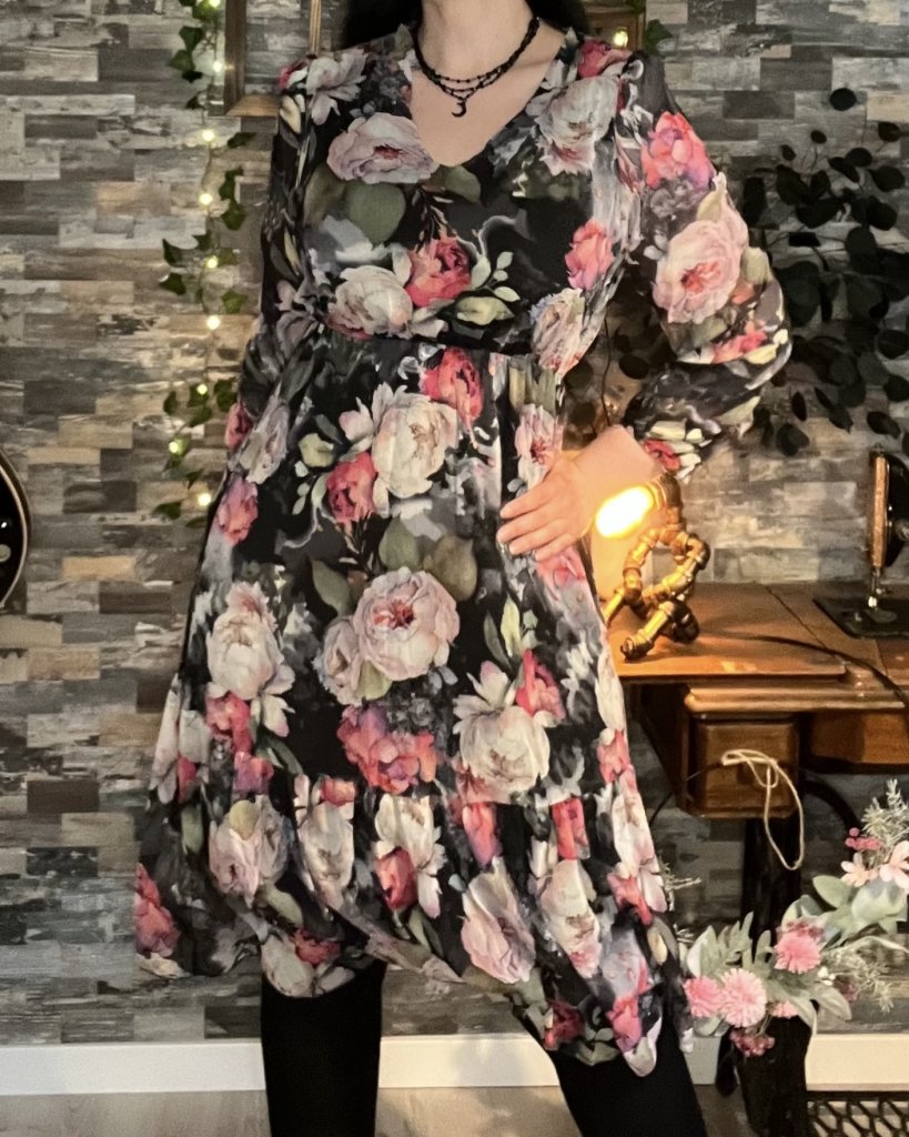Vacker klänning i blomstermönster